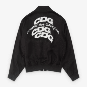 Elevate your streetwear style with the CDG Warped Logo Bomber Jacket Black, a perfect fusion of contemporary fashion and timeless