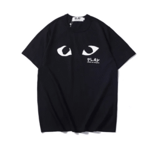 The CDG Black Eyes T Shirt is a statement piece that blends minimalistic design with contemporary streetwear aesthetics. Designed by