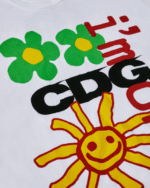 The collaboration behind this piece highlights the fusion of CDG’s avant-garde approach with Cactus Plant Flea Market’s playful and unconventional design language. This makes it more than just clothing — it’s a collectible item that embodies the intersection of art, culture, and streetwear fashion. Elevate your wardrobe with this limited edition T-shirt and showcase your appreciation for exclusive fashion.