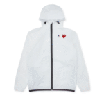 The jacket features a durable front zip closure, adjustable cuffs, and a hood for added versatility and protection. The minimalist design emphasizes sleek lines and subtle branding, offering a refined aesthetic suitable for both men and women. Lightweight yet sturdy, the CDG K-Way Zip Jacket White is easy to pack and carry, making it perfect for travel or layering during transitional seasons.