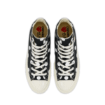 Crafted with premium canvas, durable rubber soles, and reinforced stitching.  The CDG Play Converse Polka Dot Red Heart Chuck Taylor All Star ’70 High Sneakers offer long-lasting wear without compromising on aesthetics. Beyond their eye-catching design. These sneakers reflect the true spirit of collaboration between two cultural icons: Comme des Garçons Play and Converse. Whether paired with casual jeans, streetwear fits. Perfect for those who value comfort, quality, and creative design, this sneaker is more than footwear—it’s a statement piece.